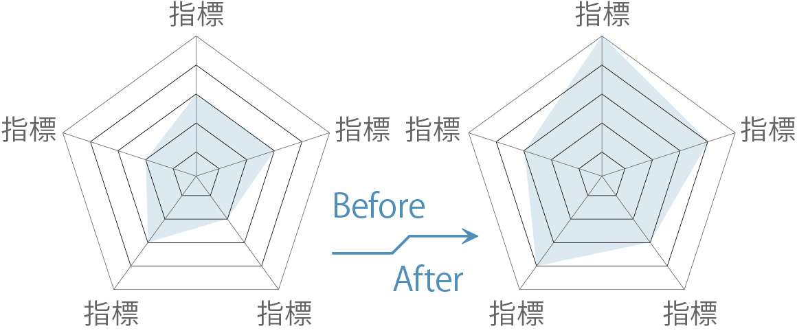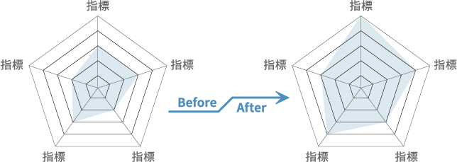 チャートのイメージ当社独自の経営力判定指標を用いて、診断・次の強化ポイントを明確にします。